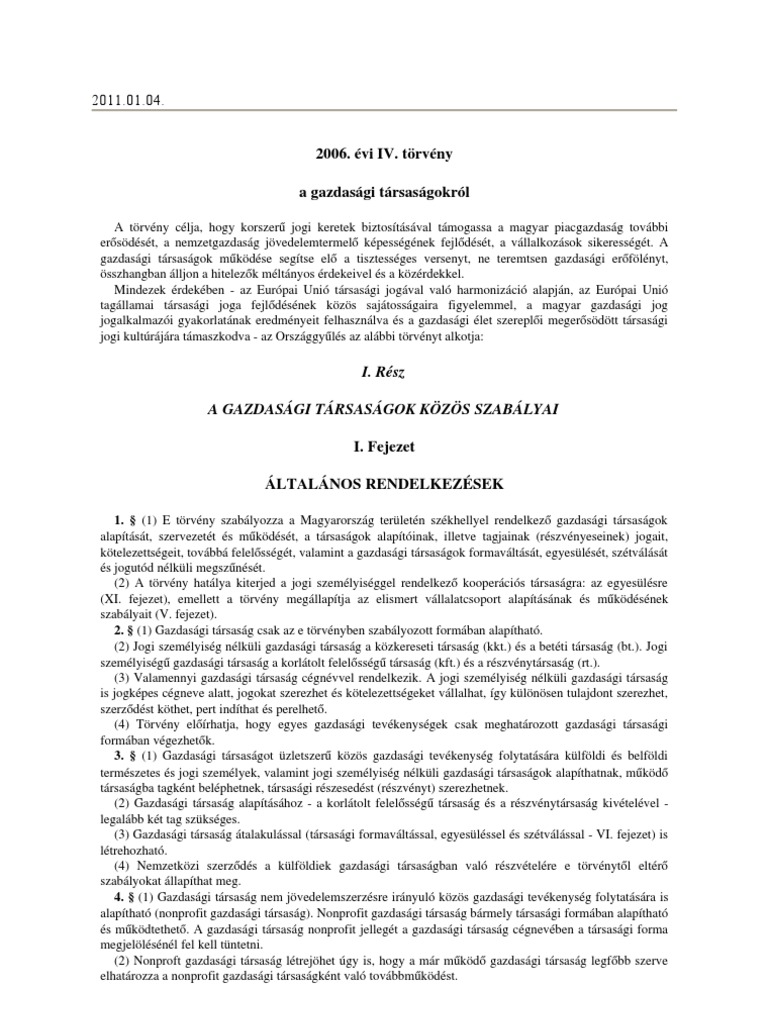 2006 Evi Iv Torveny A Gazdasagi Tarsasagokrol I Resz A Gazdasagi Tarsasagok Kozos Szabalyai I Fejezet Altalanos Rendelkezesek Pdf Ingyenes Letoltes