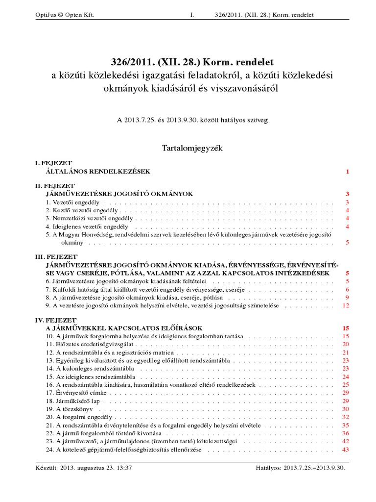 326 2011 Xii 28 Korm Rendelet A Kozuti Kozlekedesi Igazgatasi Feladatokrol A Kozuti Kozlekedesi Okmanyok Kiadasarol Es Visszavonasarol Pdf Free Download