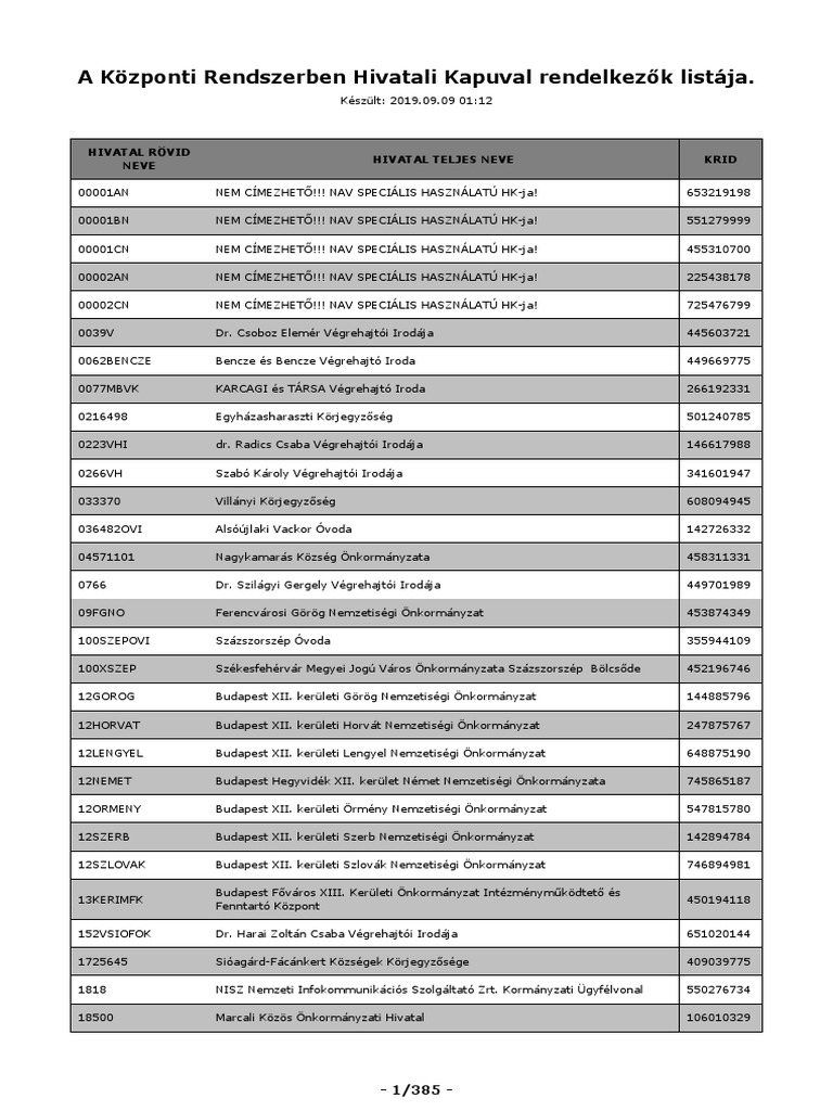 Hivatal Lista 20190909